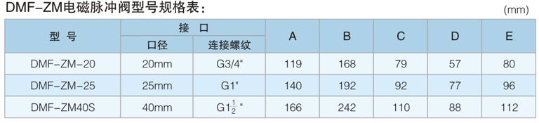 DMF-ZM-20電磁脈沖閥技術(shù)指標: